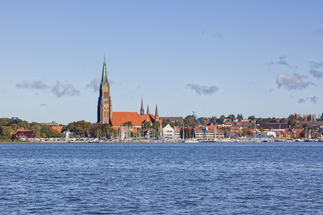 Die Tour beginnt am Mittag vom Bahnhof in Schleswig. Es wird bald die Schlei erreicht und hier hat man einen schönen Blick auf die andere Schleiseite mit dem Schleswiger Dom und der Stadt.